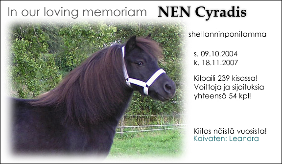 | »Rotu: | Shetlanninponi | »Omistaja: | Leandra |
