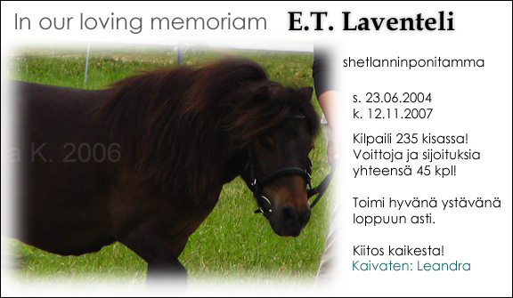 »Virallinen nimi: E.T. Laventeli  »Väri:  Tummanruunikko